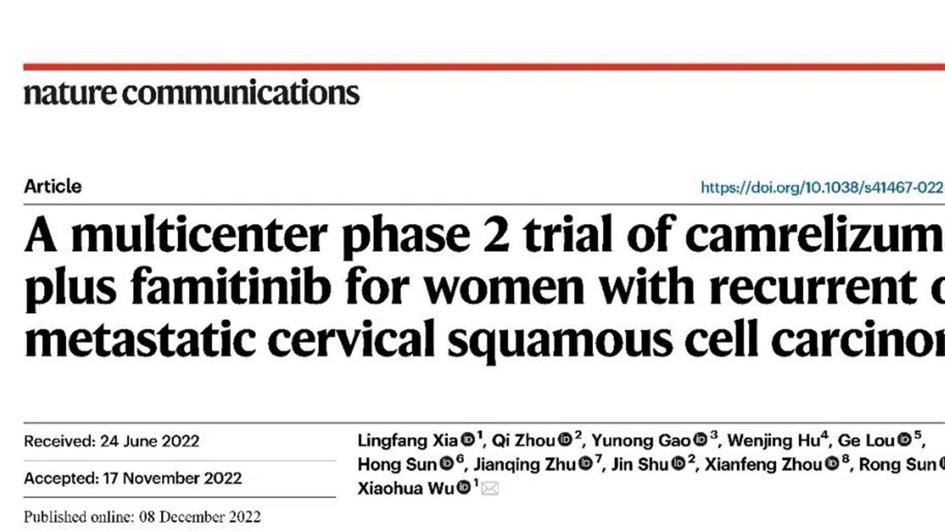 利来w66国际创新药卡瑞利珠单抗联合法米替尼用于复发或转移性宫颈癌研究结果荣登JCO